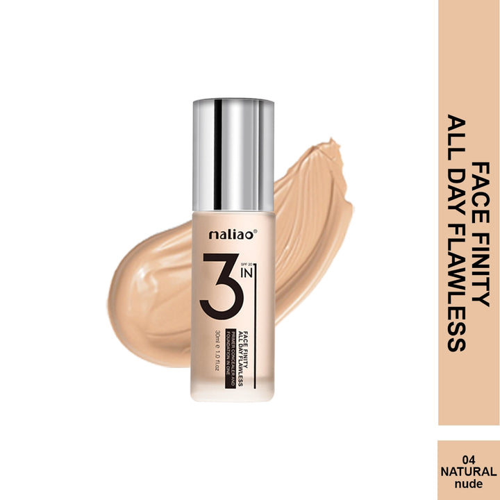 Achieve a flawless, long-lasting finish with the Maliao 3-in-1 Face Finity a multitasking marvel that combines the power of a primer, concealer, and foundation in one convenient formula. Designed for all-day wear, this lightweight yet high-coverage product smooths, corrects, and perfects your complexion with a natural matte finish.