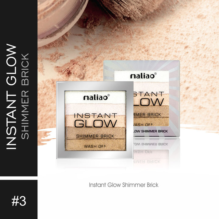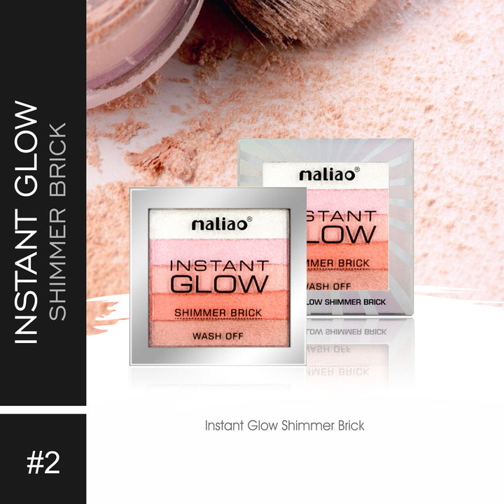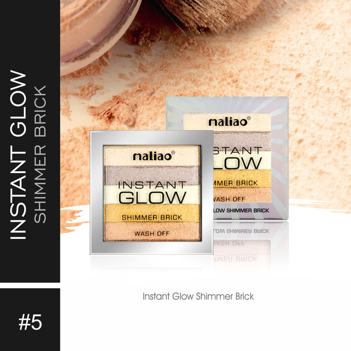 A multi-tonal shimmer brick palette featuring five highly pigmented shades (typically labeled 01–05) that blend seamlessly together. Designed for use as a highlighter, blush, or even subtle contour, offering a radiant, glowing finish that suits many makeup styles.