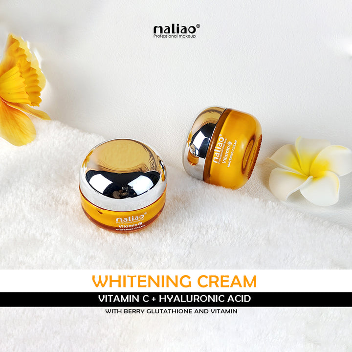 Maliao Whitening Cream combines Vitamin C, Berry Glutathione, and Hyaluronic Acid to brighten skin, fade dark spots, and deeply hydrate. It evens skin tone, reduces fine lines, and rejuvenates damaged skin for a healthier, more radiant complexion.